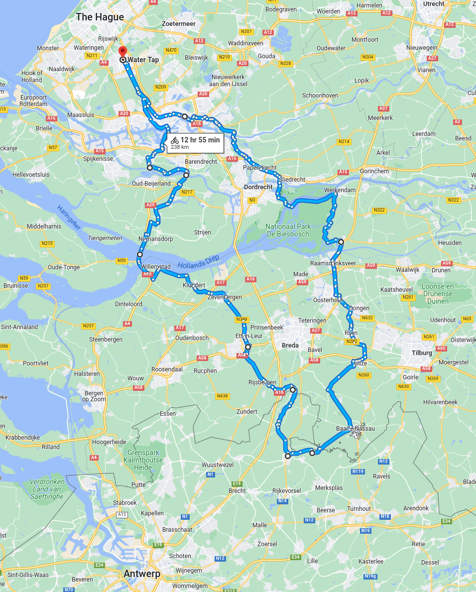 Those that started in Delft did about 260 km over the two days and I did about 220 km due to the route passing through Rotterdam.