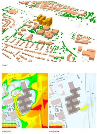 There currently exist a Dutch norm for comfort and safety of pedestrians in urban areas. Each building that is constructed in a city is analyzed with computational fluid dynamics simulations and KNMI wind data to determine the wind direction and magnitudes in the surrounding urban spaces. If the wind speed exceeds the comfort or safety thresholds the building location and or design is modified to lower the wind speed in the areas. This internship would help create thresholds for bicyclists in urban areas. The general approach would be to apply wind force magnitudes and directions to the bicycle-rider balance and control models developed by the Bicycle Lab to determine what wind magnitude force and direction cause departure from a bicycle lane or cause falls. The results of the internship will be included in the next norm on wind force limits in urban environments.